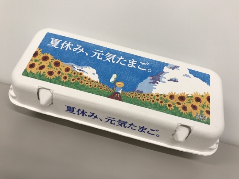 夏休みまで、あと少し♪ そんな時期にぴったりのデザインになっています! 通常の鶏卵パックと同様のお値段にてご注文いただけます! 鮮やかなひまわりが咲く夏仕様のパックでぜひご注文ください! ※10個入り(白地)のみ ※無くなり次第終了となりますのでご注意ください