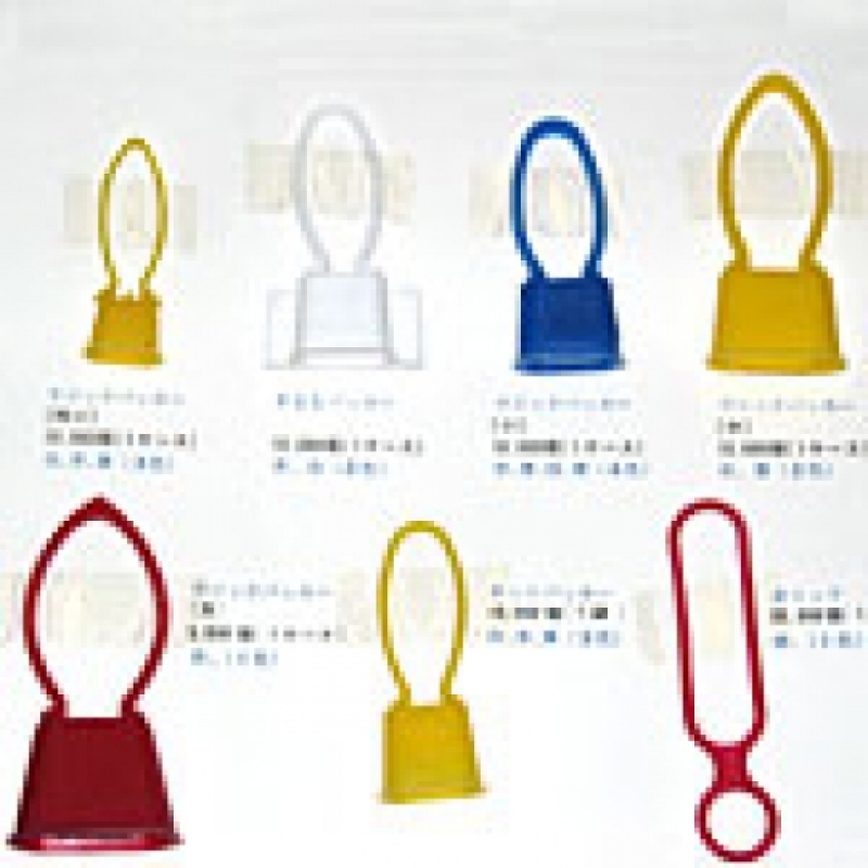 卵のネット包装にかかせない口元を止めるアイテムです。 指が入る構造となっており軽い商品なら持ち手として使用できますが、 乱暴に扱うと外れる恐れがありますので、注意してご使用ください。